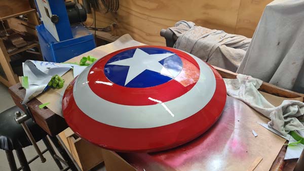 My Grandson is a fan of Marvel comic heroes, including Captain America (!) so I made him a replica CA shield from an old round metal firepit which was found at a local junk yard.
