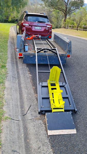 The picture above shows a motorised ramp I made to assist with loading my motorbike onto my trailer. This makes the process much easier and safer.